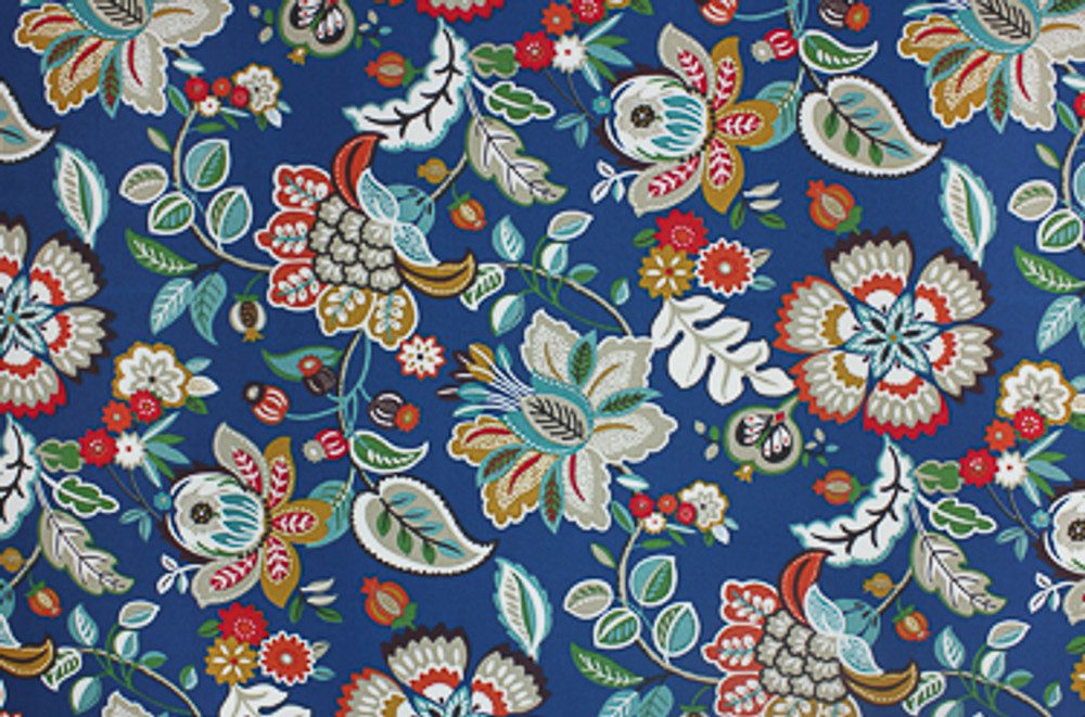 This is a pigment printed spun polyester fabric. The beauty of these fabrics are the intricate patterns and beautiful colors that are available. They can be used indoors or outdoors in areas that get light to moderate use. If they are used in areas that get a lot of direct sun we recommend a light colored background.